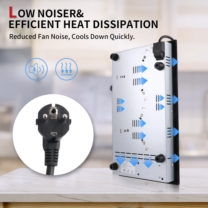 2-Zone Cooktop: 1200W and 1800W burners, fast heating, 220-240V.