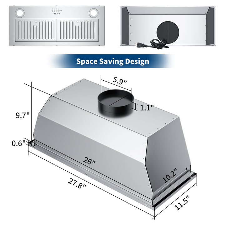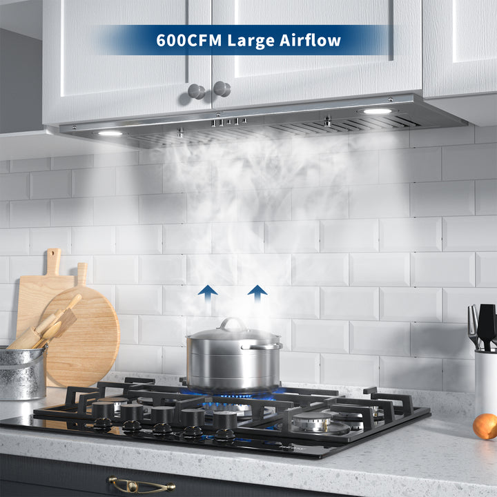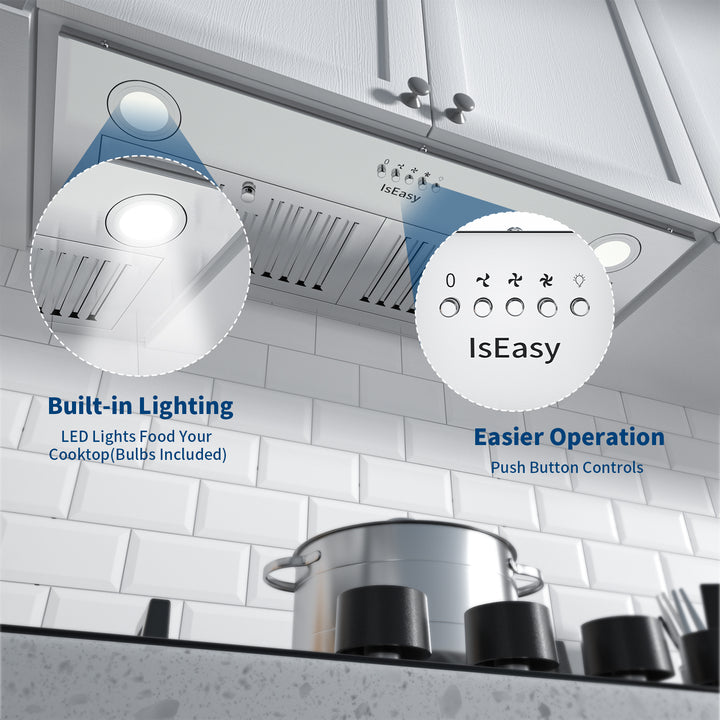 Range Hood Insert 30 inch, IsEasy Built-in Kitchen Hood With 600 CFM